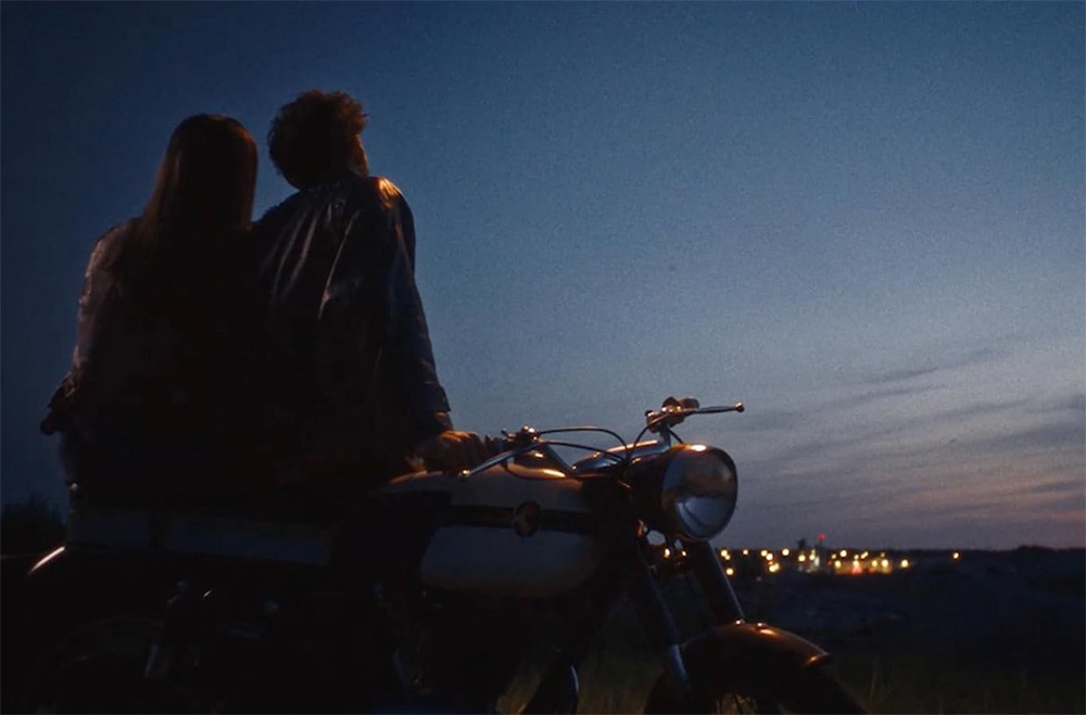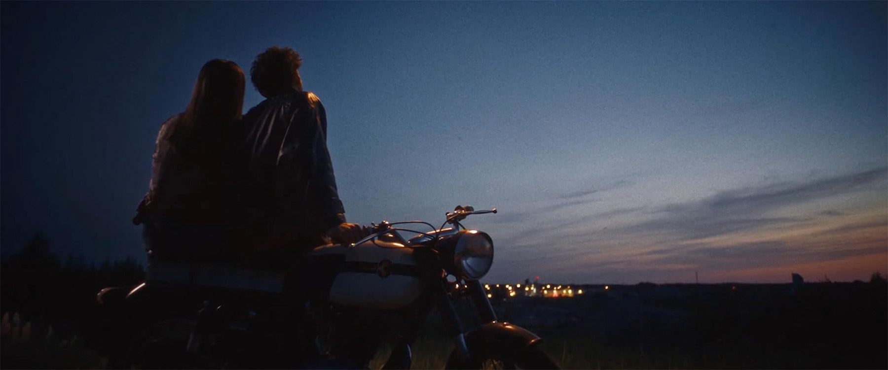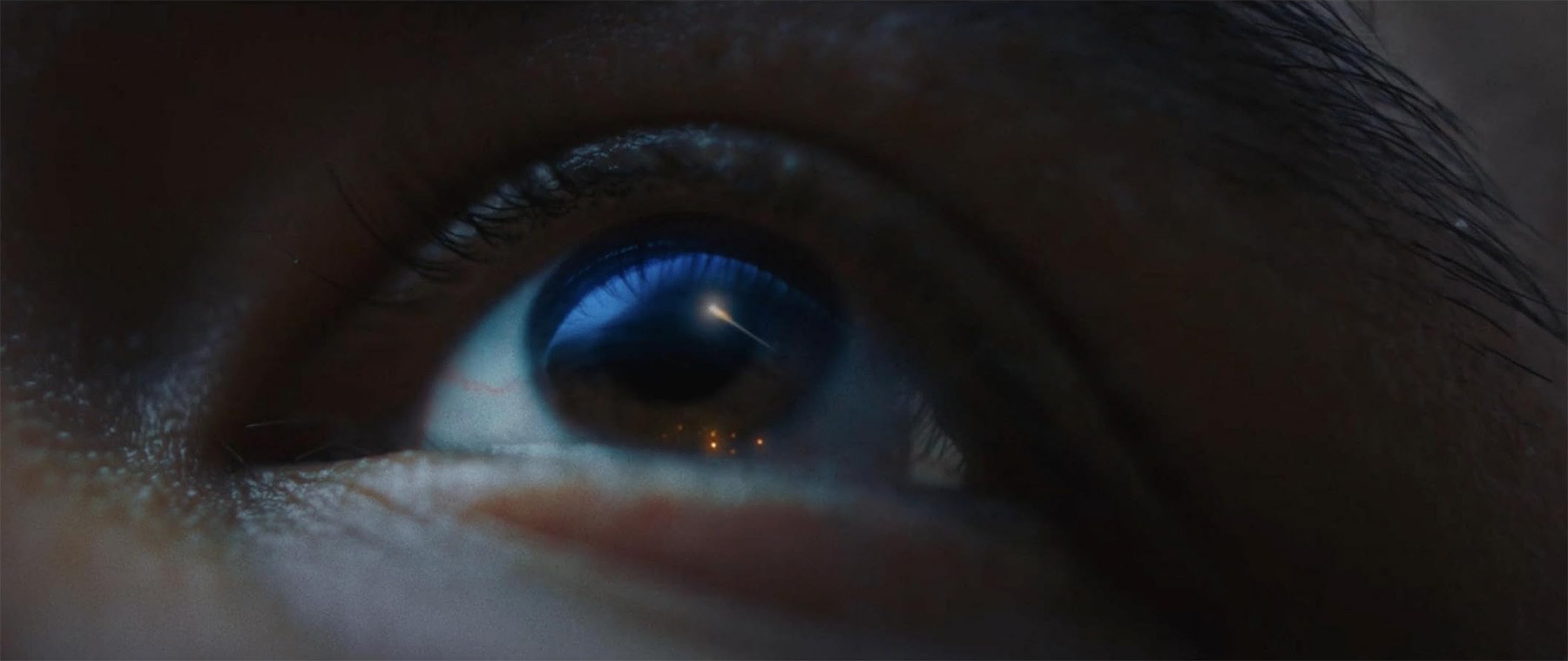 The line is clearly reflected on their eyes. The young girl thinks it is a shooting star. With her fixed gaze she asks her young lover to make a wish.