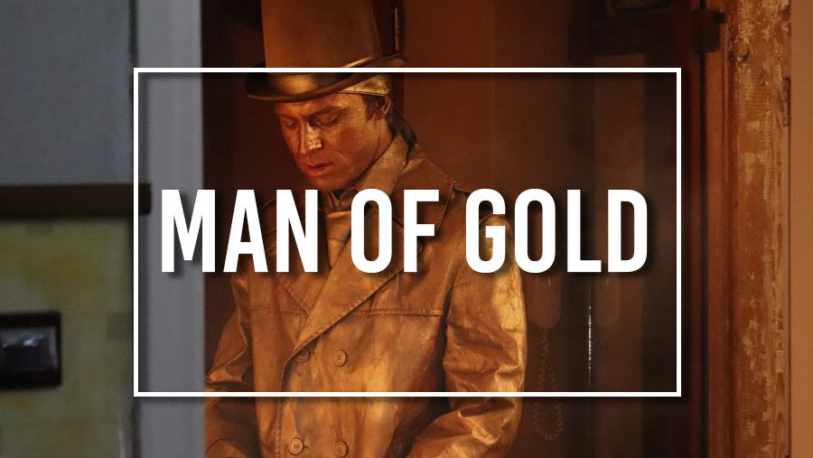 We hear footsteps approaching from the left side, the sound of two men talking while passing by. The image clears up as if the lens is a human eye that is opened after a sleep. The vague line of light is revealed to be a food hatch in the door of a prison cell. A solitary confinement cell. We see the surrounding world through the eyes of a prisoner.